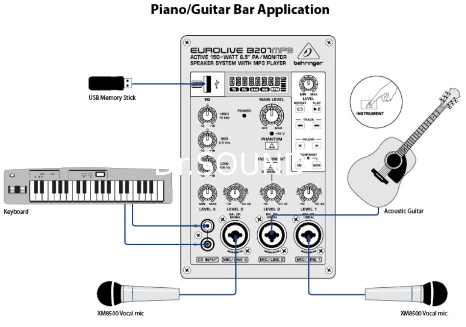 Сервисный центр по ремонту Behringer B207MP3 Behringer B207MP3 активная акустическая мини-система/монитор, 150Вт, c 3-полосным эквалайзером и MP3 плеером.
