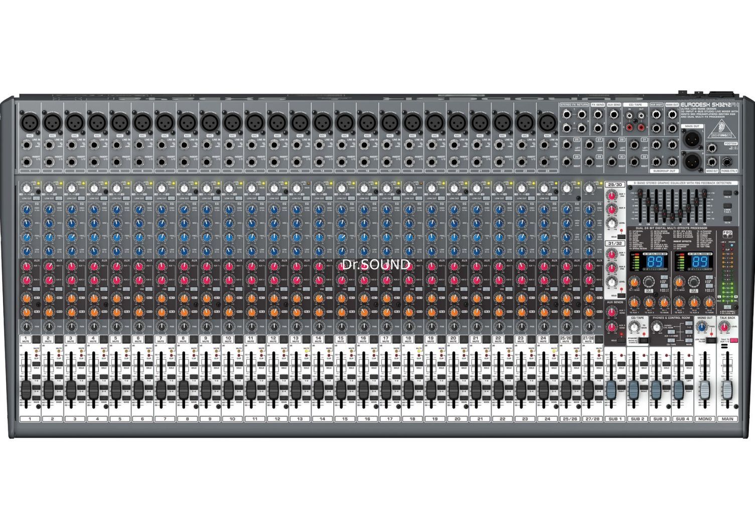 Сервисный центр по ремонту BEHRINGER SX3242FX Behringer SX3242FX - микшер,24 моновхода, 2 осн. и 2 дополн.стереовхода, 4 AUX-шины, 4 подгруппы