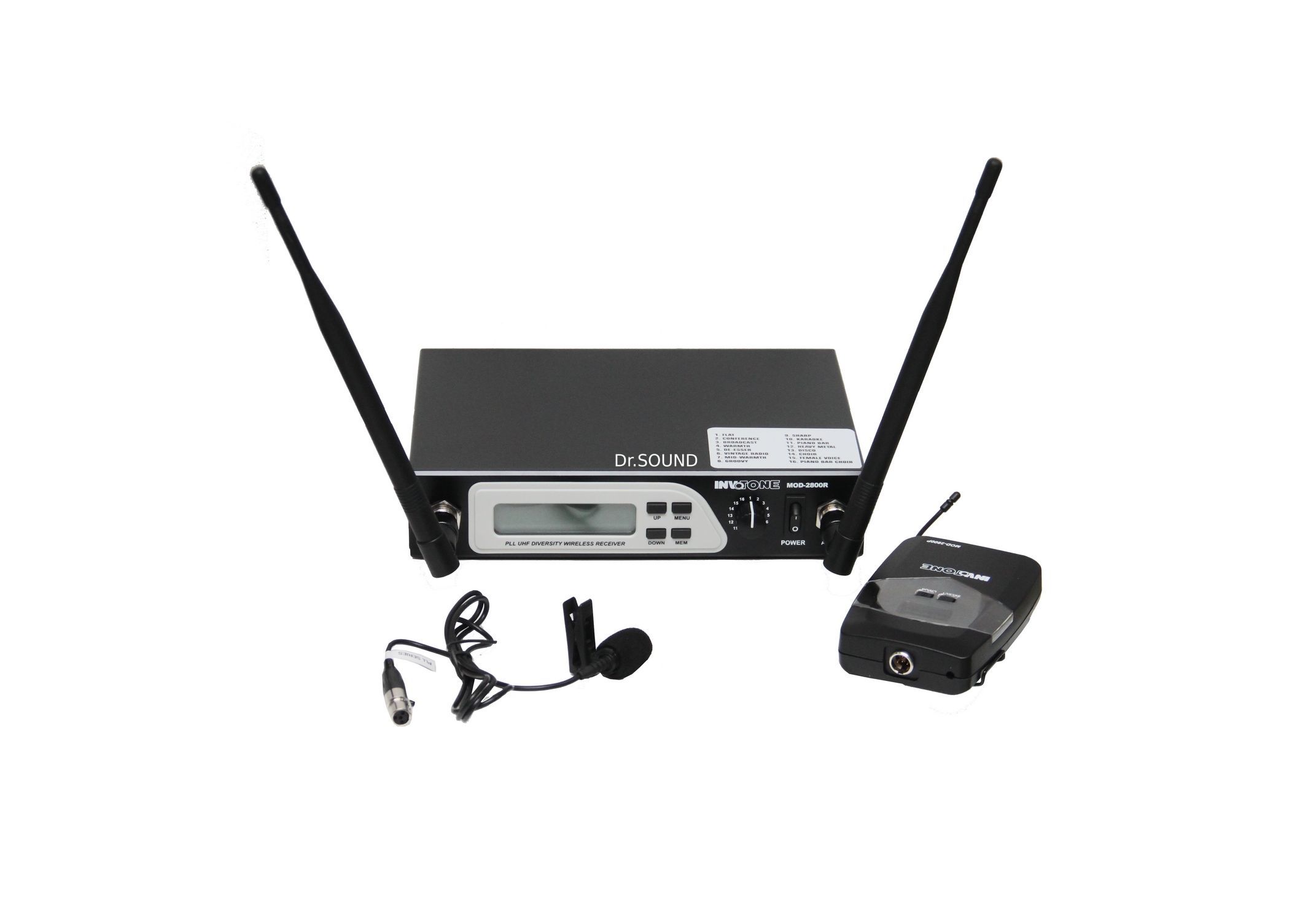 Сервисный центр по ремонту INVOTONE MOD2800LV INVOTONE MOD2800LV - двухантенная радиосистема с петличкой, DSP, UHF 710-726 МГц, с/ш >90дБ