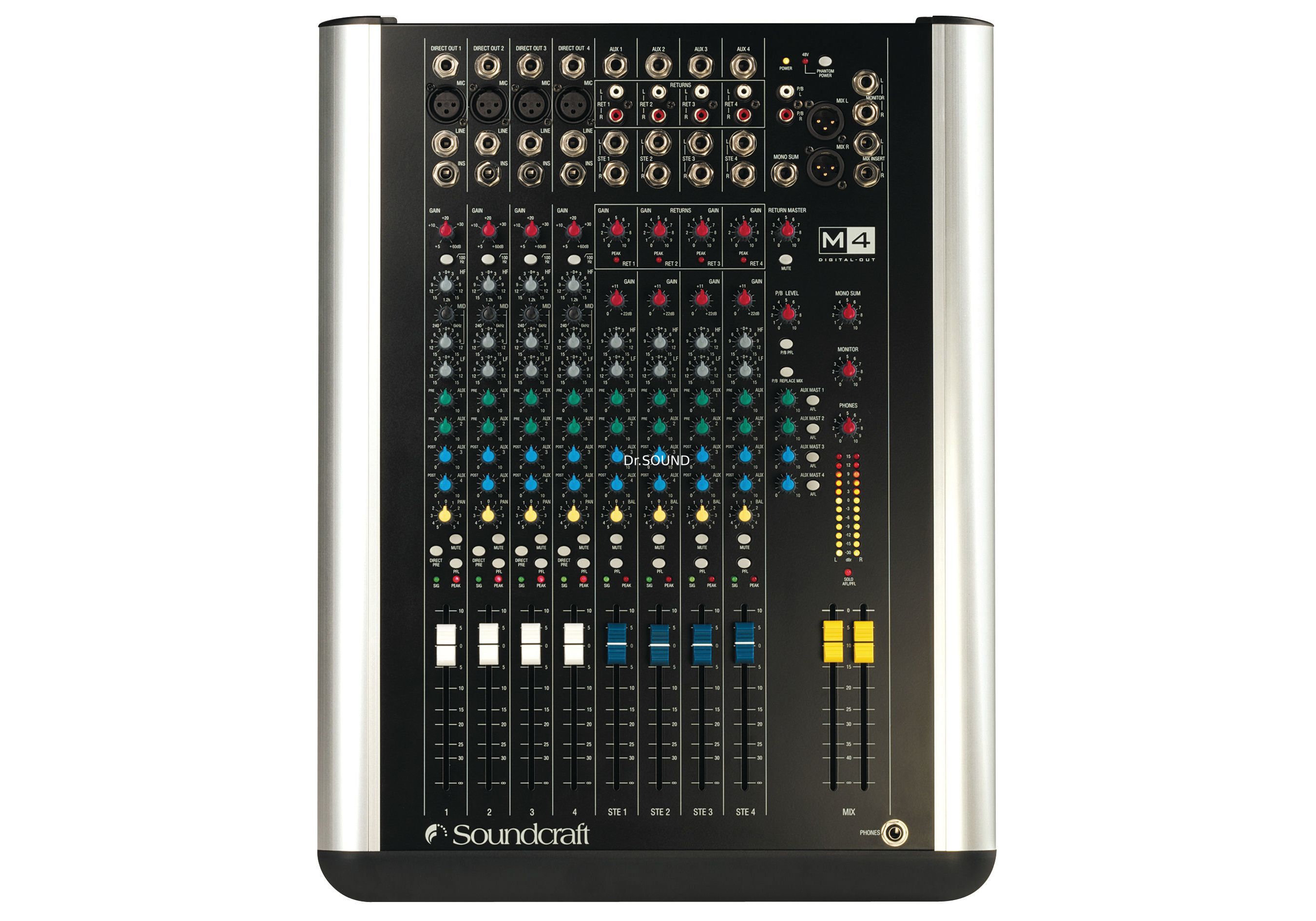 Сервисный центр по ремонту Soundcraft M4 Микшерные консоли Spirit M4, M8 и M12 предоставляют пользователю соответственно четыре, восемь и двенадцать монофонических входов. Все пульты серии оборудованы четырьмя стереофоническими входами, четырьмя стереофоническими возвратами.